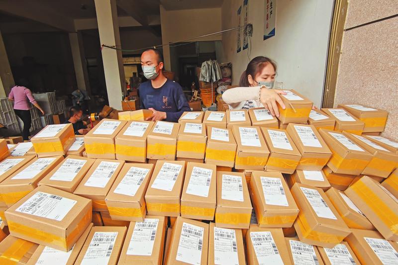 4月20日,隨縣倍健堂食品有限公司的員工正在按照網上訂單打包農產品,準備當天發貨。該公司年銷售桃膠、油桃、銀耳等農產品1000萬元以上。