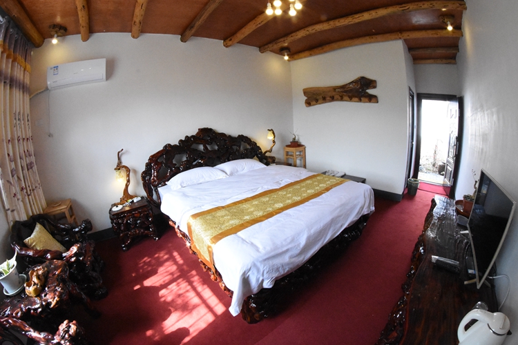 根雕客房里的根之龍床、鳳榻、沙發,茶臺,可謂匠心雅居,獨一無二,讓人今宵之享,終生難忘。