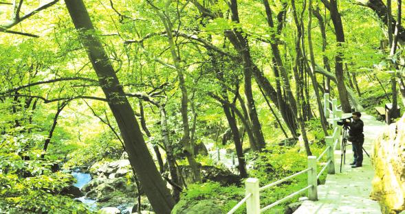 “蒼松翠柏長生地,綠水青山古洞天。”隱匿于寶珠峰旁的白龍池,海拔840米,猶如一面碧綠的明鏡懸掛于山巒之間。這里一面是藍藍的湖水,一面是碧綠的叢林和棧道。陽光照耀下,樹影婆娑,在漫步中,尋找光影中的你。
