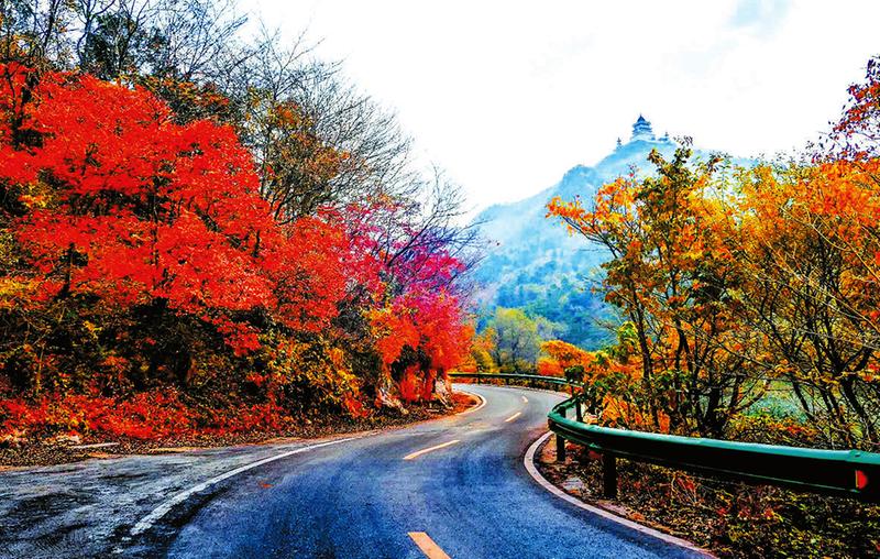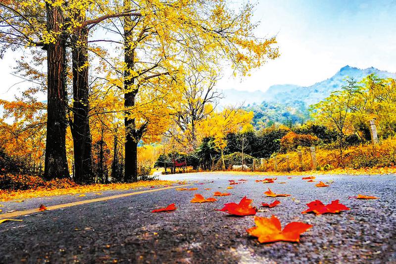 大洪山的秋色,是需要走進山林,花點時間慢慢體味的。環繞白龍池邊的木棧道上,已鋪滿繽紛的落葉,漫步其間,腳下的秋葉、身旁的流水、飛舞的紅葉,林間的秋色絢爛多姿。