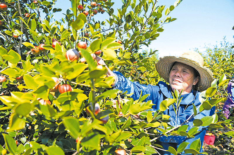 岳雄豐公司油茶基地,郁郁蔥蔥的油茶樹漫山遍野,紅綠相間、圓潤飽滿的油茶果掛滿枝頭,白色的油茶花正含苞待放,形成了一道獨特的風景線。 ?