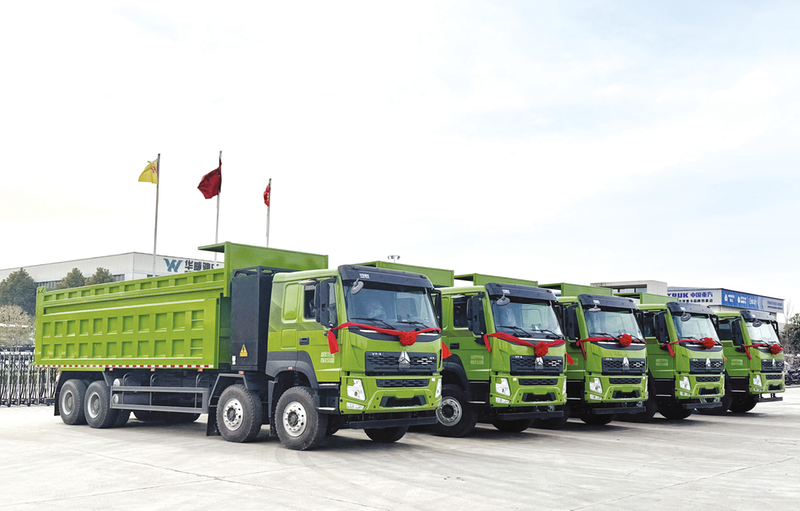 圖為重汽華威公司整裝待發的自卸車產品 (全媒記者晏先勇、王聰瑩、通訊員饒星琳攝)