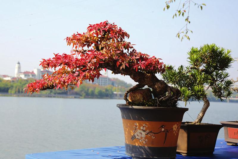 盆景園區(qū),由松柏榆楓等樹種制作的500余盆盆景,或虬曲多姿,或清秀古雅,不時(shí)獲得觀眾的稱奇贊嘆。