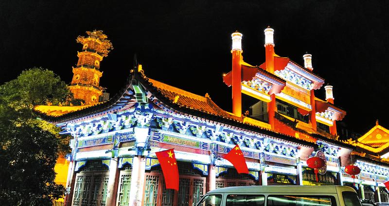 為提升隨州城區地標文峰塔的知名度,打造文峰塔廣場地域文化新名片,曾都區東城街道近期對文峰塔廣場實施景觀亮化改造升級,增添照明設備,完善景觀設施,營造恢宏大氣、璀璨絢麗的亮化效果。圖為10月6日文峰塔廣場北樓夜景。?