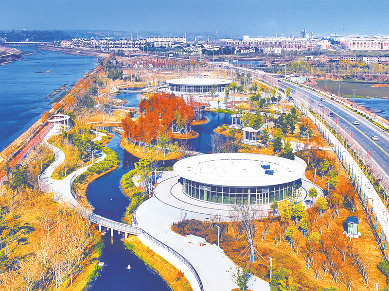 仲冬時節,從高空鳥瞰隨州市曾都區的月亮灣生態濕地公園,美景盡收眼底。這座斬獲2024年世界建筑節中國基礎設施設計大獎的公園,園內布局精妙,陽光草坪綠意延展,濕地景觀、生態綠島錯落交織,現代園林與蜿蜒小徑、澄澈湖泊相映成趣,構成一幅和諧生態畫卷。