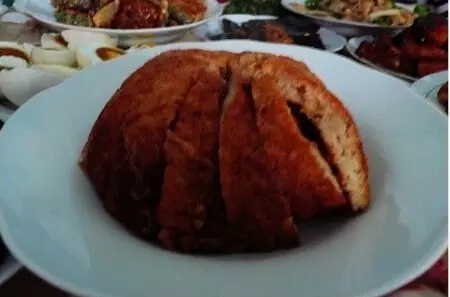 ??? 三鮮也是湖北隨州人過年一種食品,做法是這樣的,是精瘦肉,油條打碎,藕丁,混在一起,加少量的蔥花,然后加面粉打和,用豆油(所謂的豆油就是做豆腐的時候上面的一層油)把這些裹成圓形(形狀不一定,隨各自的喜好,一般是四邊形),再放到油里炸,成黃色撈出即可,吃的時候,切片燙火鍋,味道鮮美。