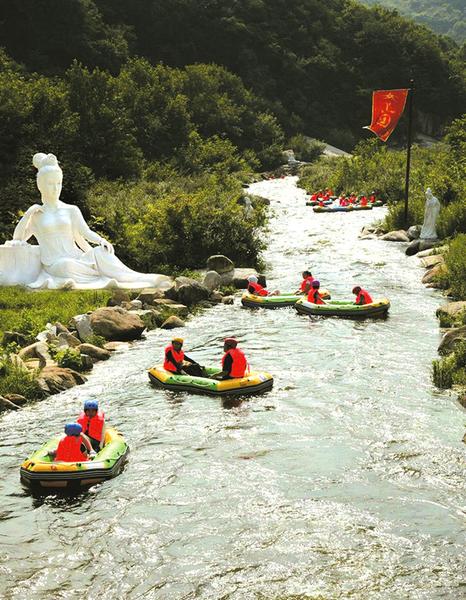 據了解,西游記漂流年可接待游客逾30萬人,直接收入在5000萬元左右。淮河鎮600多人參與景區服務業,48家農家樂在旺季兩月就創收6至20萬元不等,景區所在的龍泉村建起56戶別墅,美麗鄉村如詩如畫。
