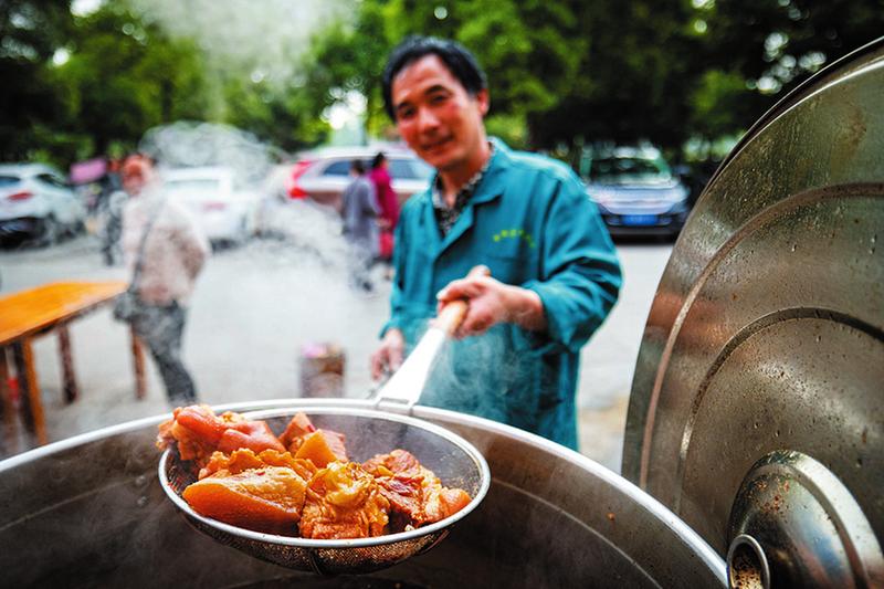 “一碗拐子二兩酒,幸福生活天天有。”拐子飯的美味逐漸俘獲了越來越多人的味蕾。每天早晨或中午,吃上一碗拐子飯,有的人還會配上二兩隨州特產(chǎn)的黃酒,渾身快速充滿力量,也得到精神上的滿足。每一碗拐子飯中,盛滿的是人們對人間煙火、尋常幸福的一種追求。 ?