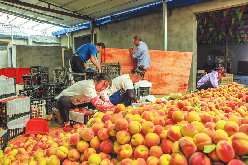 今年春季我市氣溫較低、氣候干爽,水果產(chǎn)量比往年有所減少,但水果品質(zhì)變得更好,贏得了市場(chǎng)青睞,果農(nóng)減產(chǎn)反增收。圖為6月12日,隨縣尚市鎮(zhèn)太山村毛桃、黃桃收購(gòu)點(diǎn)繁忙的景象。