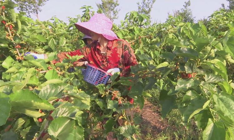 在花果海桑葚園里,工作人員廖幫明正在為桑樹整枝、疏通行道?!疤崆笆柰ê糜尾降?,方便游客采摘”,廖幫明說(shuō),“桑葚都是以原生態(tài)的方式種植的,香甜可口,等成熟了以游客自己采摘和電商銷售,發(fā)往全國(guó)各地。”