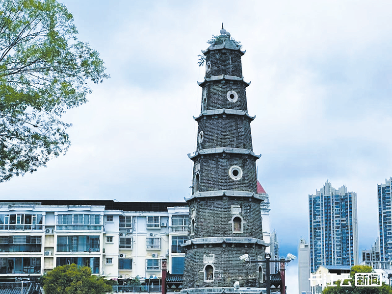 走近塔身,最先被觸動(dòng)的是它規(guī)整又獨(dú)特的形制。塔高25米,不算高聳入云,卻憑著七層遞進(jìn)的層次,透出中式建筑的韻律感;八面體的塔身用青磚砌就,每一塊磚都帶著歲月的包漿,雨水沖刷的痕跡在磚縫間暈開,成了天然的紋路。