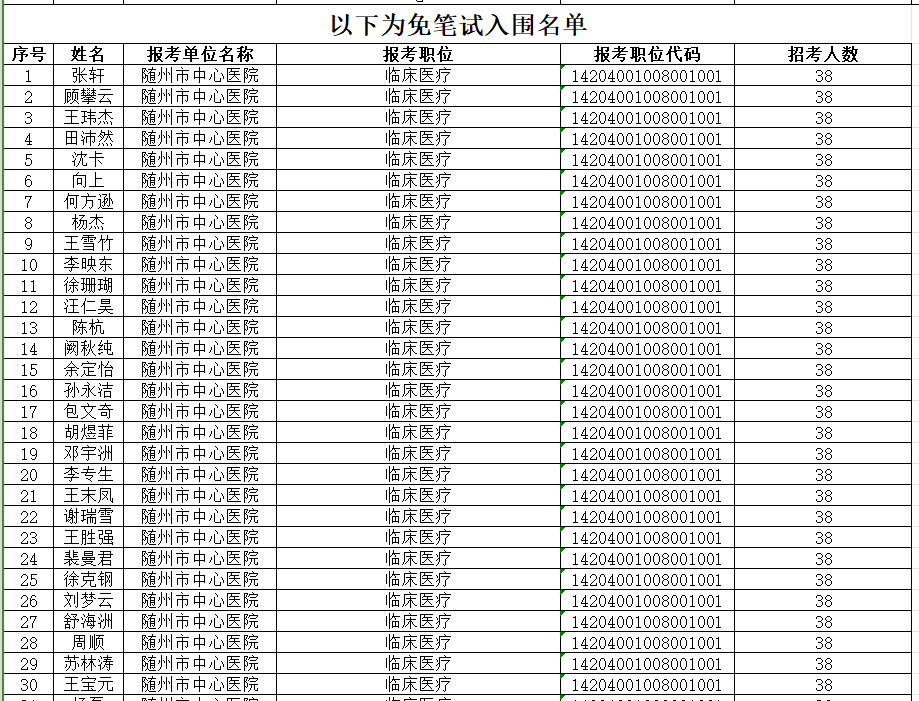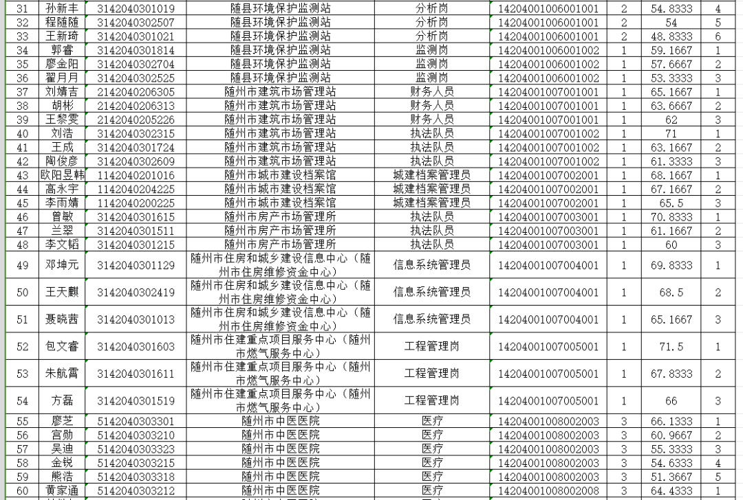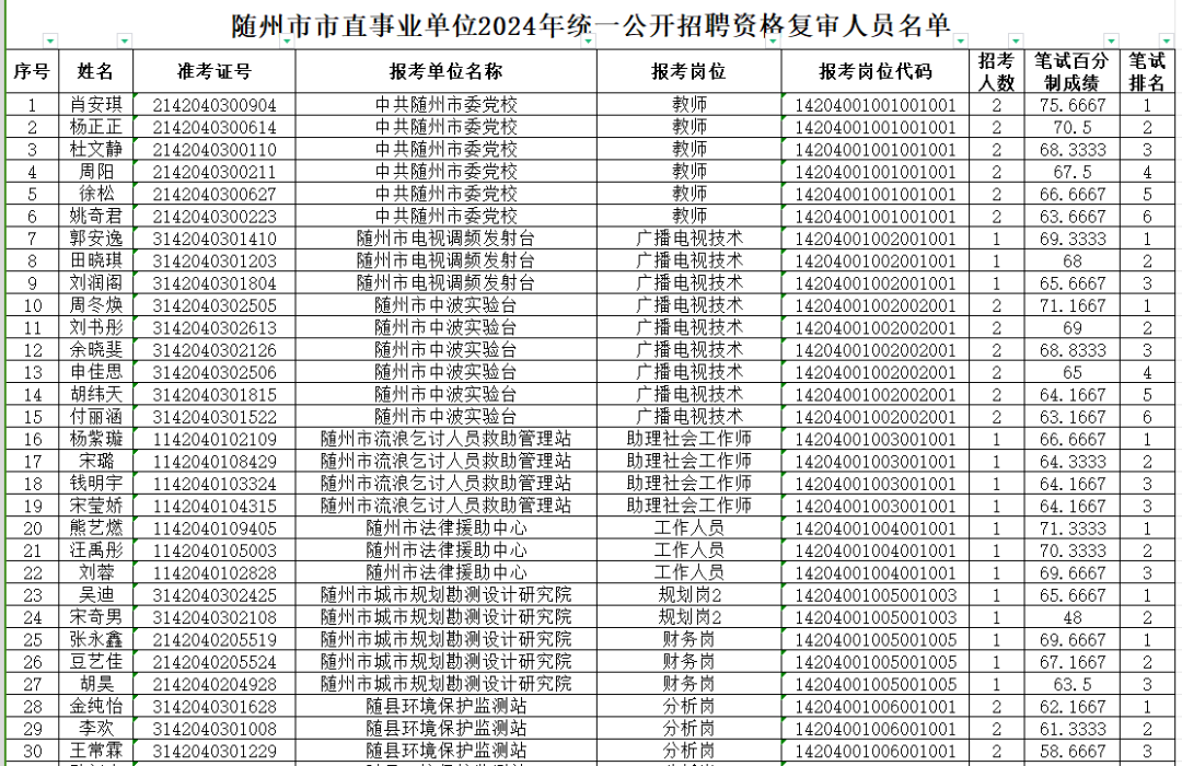 1.隨州市市直事業單位2024年統一公開招聘資格復審人員名單