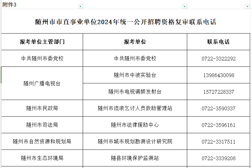 3.隨州市市直事業單位2024年統一公開招聘資格復審聯系電話