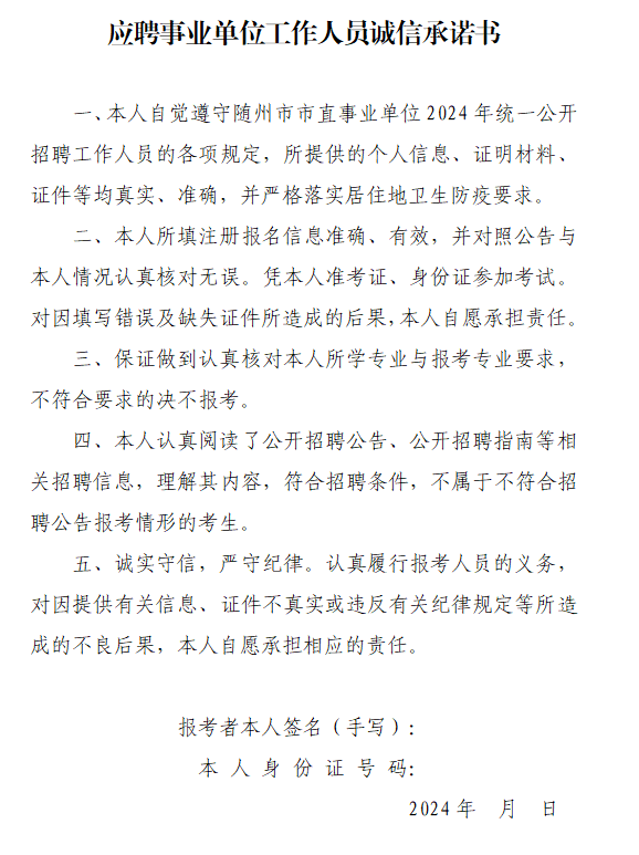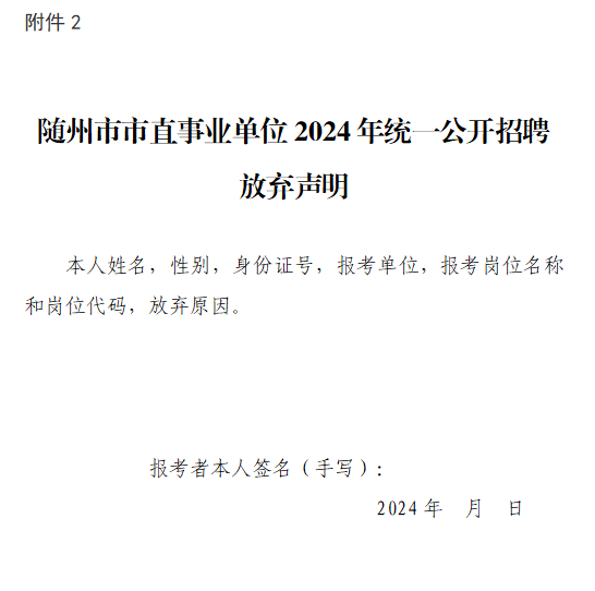 2.隨州市市直事業單位2024年統一公開招聘放棄聲明
