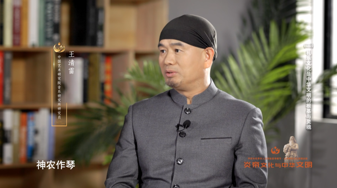 王清雷:其實(shí)在文獻(xiàn)《世本》,這里邊(記載)不僅有神農(nóng)作琴,也有神農(nóng)作瑟的文獻(xiàn)記載,在《禮記》里邊,有如下的記載:土鼓 蕢桴 葦龠,伊耆氏之樂也。唐代的孔穎達(dá)認(rèn)為,伊耆氏就是神農(nóng),就是炎帝神農(nóng),那么由此可以知道,在炎帝神農(nóng)的時(shí)期,不僅有弦樂器琴瑟,還有打擊樂器土鼓,還有吹奏樂器葦龠,從這些我們可以知道,在炎帝神農(nóng)那個(gè)時(shí)候的音樂水平其實(shí)已經(jīng)很高了。