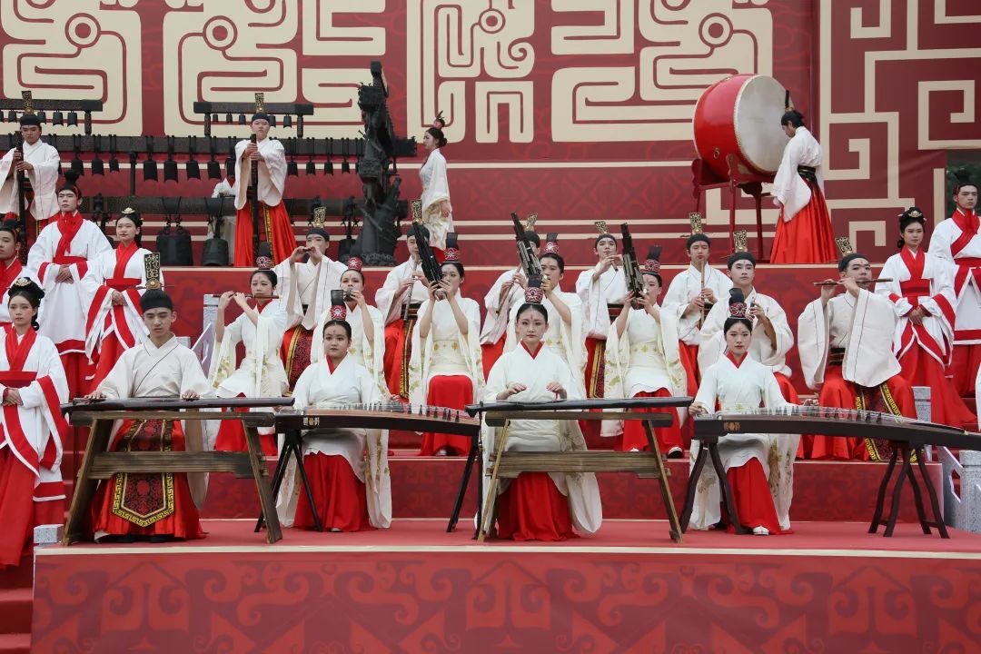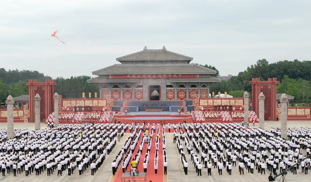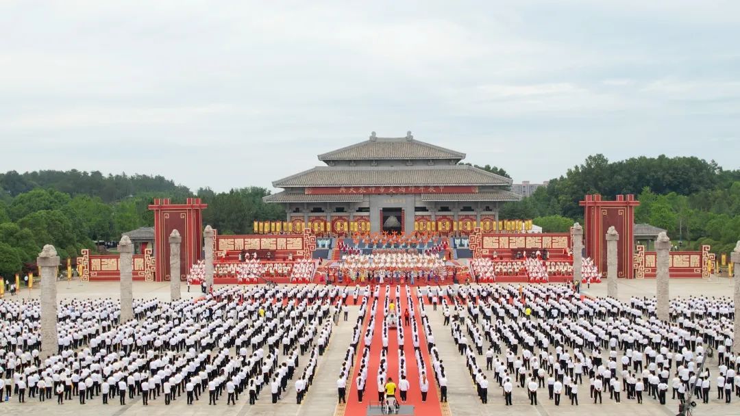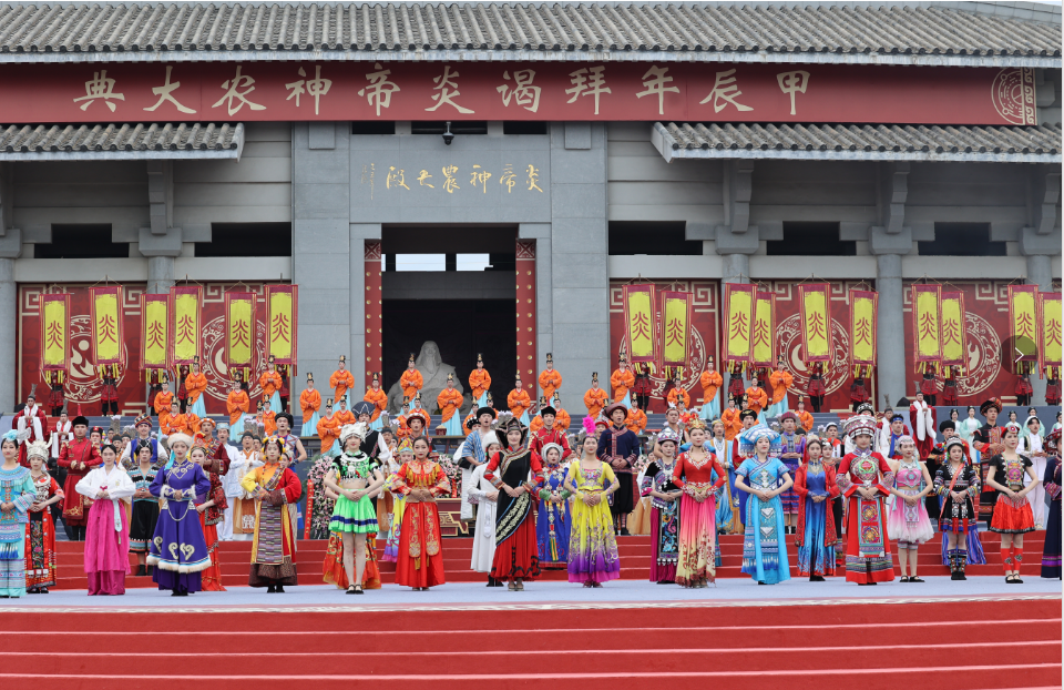 身著56個民族服飾的炎黃子孫唱響《炎帝大歌》,頌揚炎帝精神的贊歌回蕩在烈山之上。