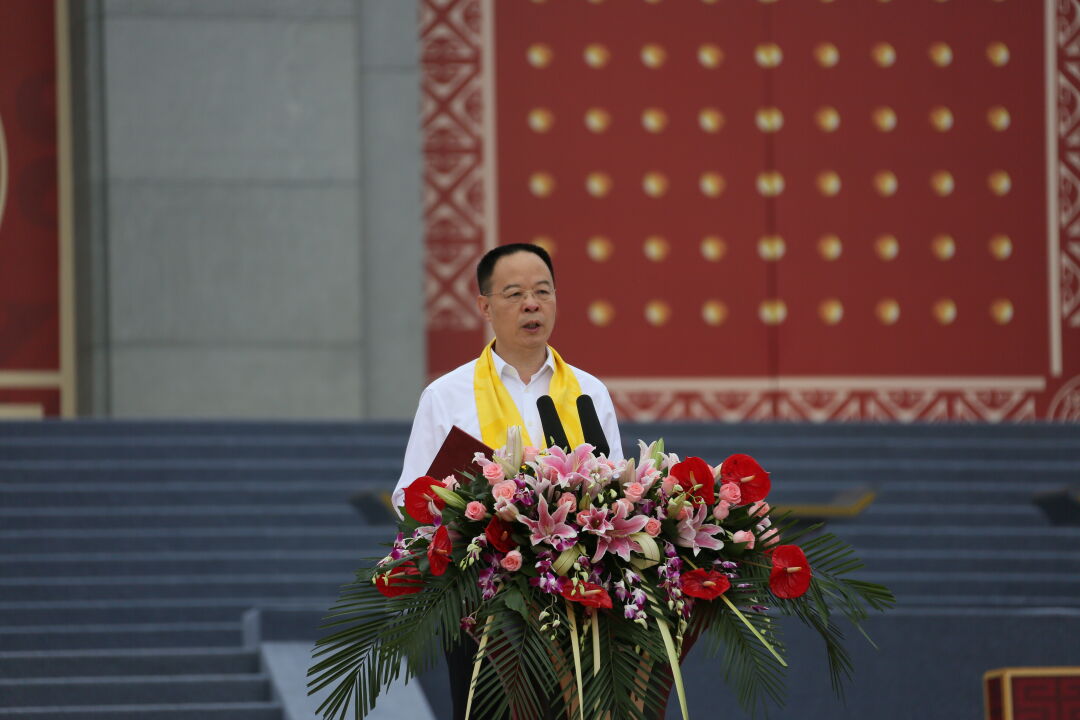 “時維甲辰,序近端陽。烈山聳翠,姜水流芳。四海龍裔,尋根厲鄉。懷赤子之景仰,慎終追遠;頌始祖之偉業,長歌未央……”王忠林恭讀《頌炎帝文》,敬頌炎帝神農煌煌功績。
