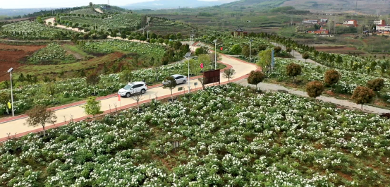 四月芳菲,國(guó)色天香。在四月來(lái)到隨縣神農(nóng)牡丹谷萬(wàn)畝牡丹觀賞區(qū),漫山遍野的白色牡丹像一條白色的玉帶包裹著美麗的鄉(xiāng)道,蔚為壯觀。在陽(yáng)光的照射下晶瑩剔透。