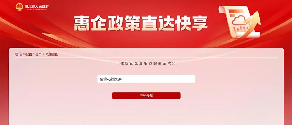 在“政策速配”欄目,您可以通過點擊“立即體驗”按鈕,在跳轉(zhuǎn)頁面輸入企業(yè)名稱,后臺系統(tǒng)將對企業(yè)的基本信息與政策適用對象信息進(jìn)行比對,為您推送“專屬定制”的惠企政策清單。