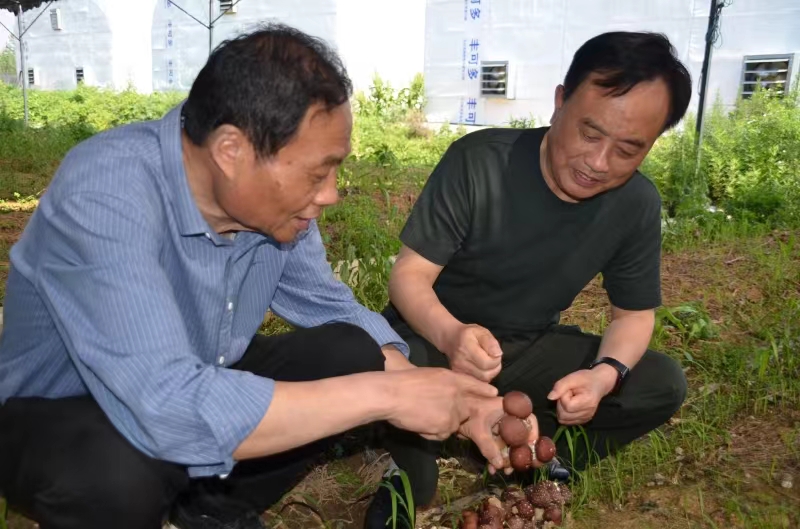5月10日,湖北省隨州市珍稀食用菌學(xué)會、湖北寶蕈農(nóng)業(yè)科技有限公司、科技小院種植的200畝大球蓋菇示范園,畝產(chǎn)8000斤,收入近萬元,讓村民親眼見證了種植大球蓋菇取得的經(jīng)濟(jì)效益。圖為會長劉毓(左)向客人介紹大球蓋菇生長情況。(通訊員:石守京)