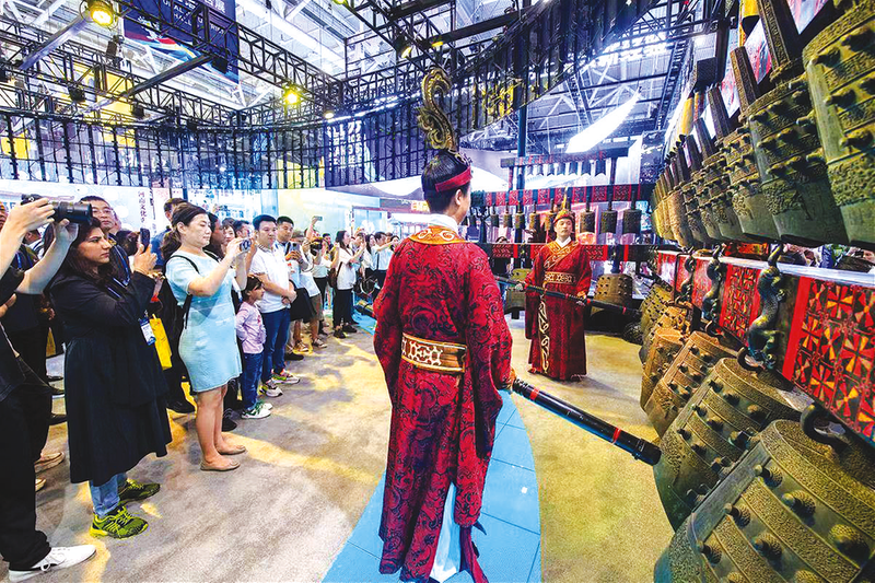 5月23日至27日,隨州編鐘,曾侯乙鑒缶、曾侯乙尊盤縮比文創(chuàng)品,龍紋銅盒、鹿角立鶴彩金鑰匙扣、盤龍罍冰箱貼等一批文創(chuàng)產(chǎn)品亮相第20屆中國(深圳)國際文化產(chǎn)業(yè)博覽交易會(huì)。