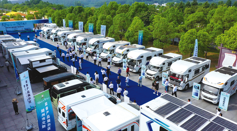 尋根節(jié)期間,隨州市汽車行業(yè)協(xié)會組織了11家房車企業(yè)共60臺精品房車參加隨州文旅裝備展。圖為6月1日房車展示現(xiàn)場。