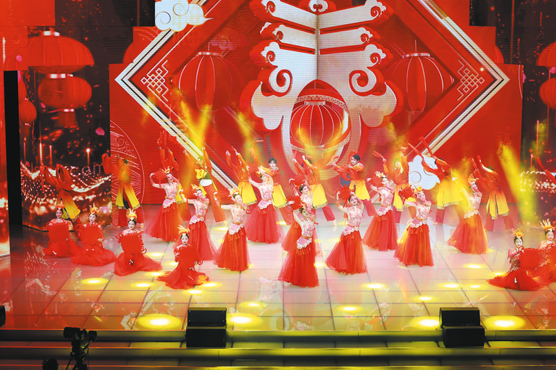 晚上7時30分,主會場晚會在《節日序曲》中拉開序幕。隨后是歌曲聯唱《上春山》《一路生花》《燈火年年》,精彩絕倫的舞蹈、歡快靈動的樂曲,生動展現了人們載歌載舞、歡度春節的場面。《打春牛》民俗表演,是用彩鞭鞭打春牛,寓意五谷豐登、國泰民安,鼓勵人們積極工作,努力奮斗;小品《選秀》展現了有愛有趣有“營養”的老年人生活;歌舞《故鄉的靜夜思》帶大家一起領略廣水的山水明月;歌舞《香菇香 杏葉黃》生動演繹了香菇飄香迎豐收、杏葉金黃醉八方的隨州美景;音樂劇《車都韻》讓大家看到了向“新”而行的專汽之都正加快轉型升級的步伐。最后,晚會在歌伴舞《編鐘敲起來》中圓滿落下帷幕。整場晚會臺上燈光璀璨、歌舞升平,臺下熱情高漲、掌聲不斷。