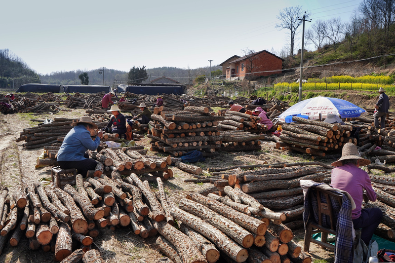 從3月中旬開始,隨縣洪山鎮(zhèn)王臺村有機椴木木耳種植基地內(nèi),村民“集中兵力”手拿釘錘,一掰、一塞、一蓋、一錘,整套點種流程一氣呵成,一排排點種好的木耳段整齊列隊。