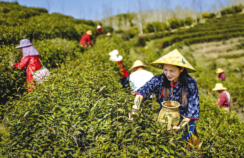隨著氣溫回暖,我市進入新茶采摘季。圖為隨縣洪山鎮云峰山茶場采茶女工熟練采摘嫩綠新芽。