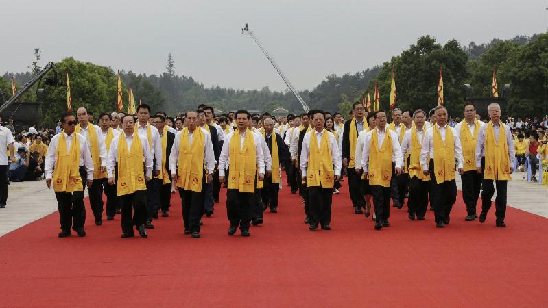 參加尋根節的領導和嘉賓步入拜祖大典現場