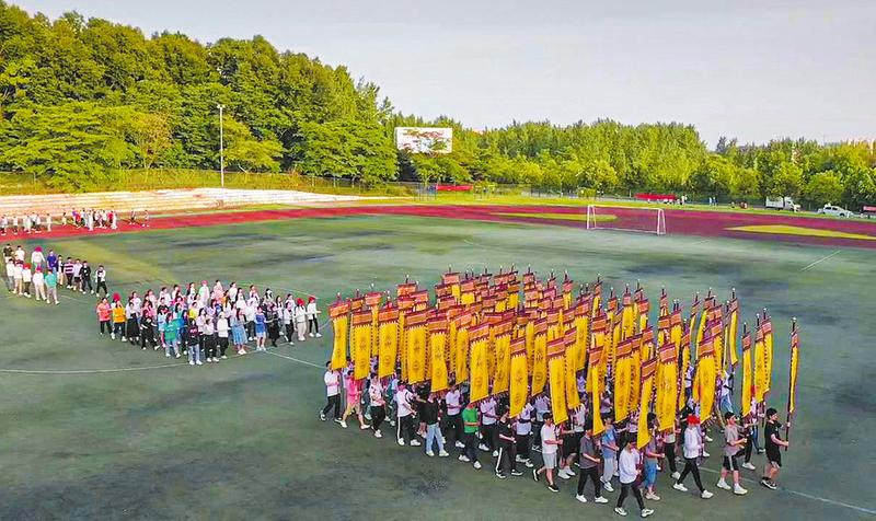 5月25日,隨州職業技術學院學生在導演的指導下進行尋根節方陣排練。