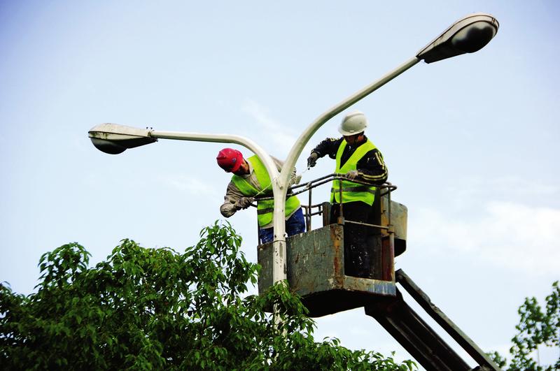 近日,隨縣各部門加快炎帝故里景區周邊環境的整治,以良好面貌迎接辛丑年世界華人炎帝故里尋根節。圖為該縣路燈管理工人正進行路桿刷白作業。