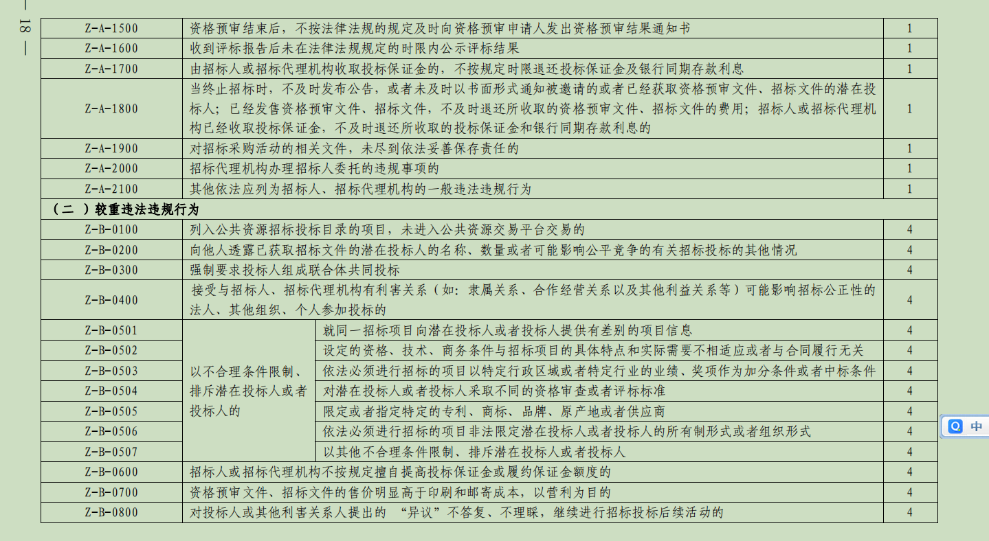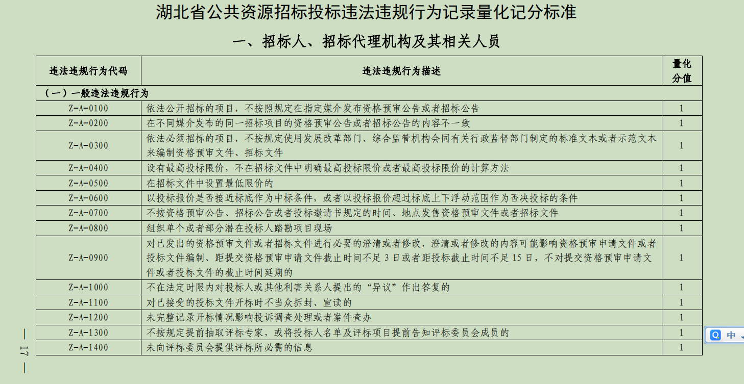 省公共資源招投標(biāo)違法違規(guī)行為記錄量化記分標(biāo)準(zhǔn)——招標(biāo)人
