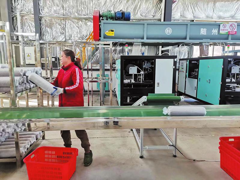 ????機(jī)聲隆隆,一袋袋長(zhǎng)寬固定、容量一致的香菇菌棒順著傳送帶前進(jìn),被運(yùn)送至養(yǎng)菌室后,由工人碼放整齊,在這里靜靜地為華麗“綻放”作著準(zhǔn)備。這是廣水市吳店鎮(zhèn)湖北紅倉(cāng)豐農(nóng)業(yè)科技有限公司現(xiàn)代化集中制棒生產(chǎn)線上的一幕。