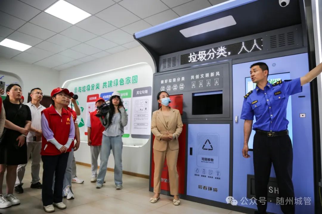 生活垃圾分類示范點(diǎn)。在曾都一中校區(qū),大家一邊聽取垃圾分類示范學(xué)校建設(shè)成果的介紹,一邊駐足欣賞學(xué)生們繪制的垃圾分類宣傳畫,對(duì)學(xué)校垃圾分類工作的用心細(xì)心贊嘆不已。在楚風(fēng)社區(qū)定時(shí)定點(diǎn)智能垃圾投放站,大家頗感興趣地跟隨宣講員體驗(yàn)“觸屏感應(yīng)”“手機(jī)掃碼”“積分兌換”等智能精準(zhǔn)分類。