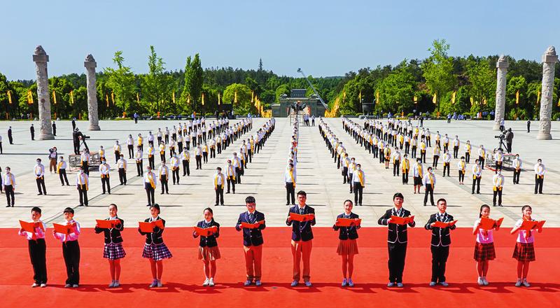 5月18日(農歷四月二十六)上午,庚子年世界華人炎帝故里尋根節暨拜謁炎帝神農大典在隨州炎帝故里謁祖廣場舉行,海內外炎黃子孫通過直播,共賀炎帝誕辰。圖為恭讀頌祖文。
