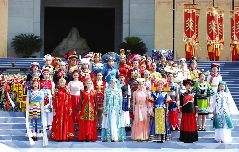 6月13日上午舉辦的癸卯年拜謁炎帝神農(nóng)大典上,身著56個民族服飾的炎黃子孫共同緬懷先祖功績,頌揚炎帝精神。