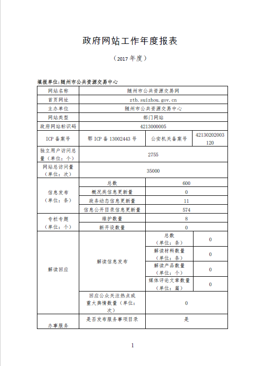 隨州市公共資源局網(wǎng)站工作年度報表(2017年度)