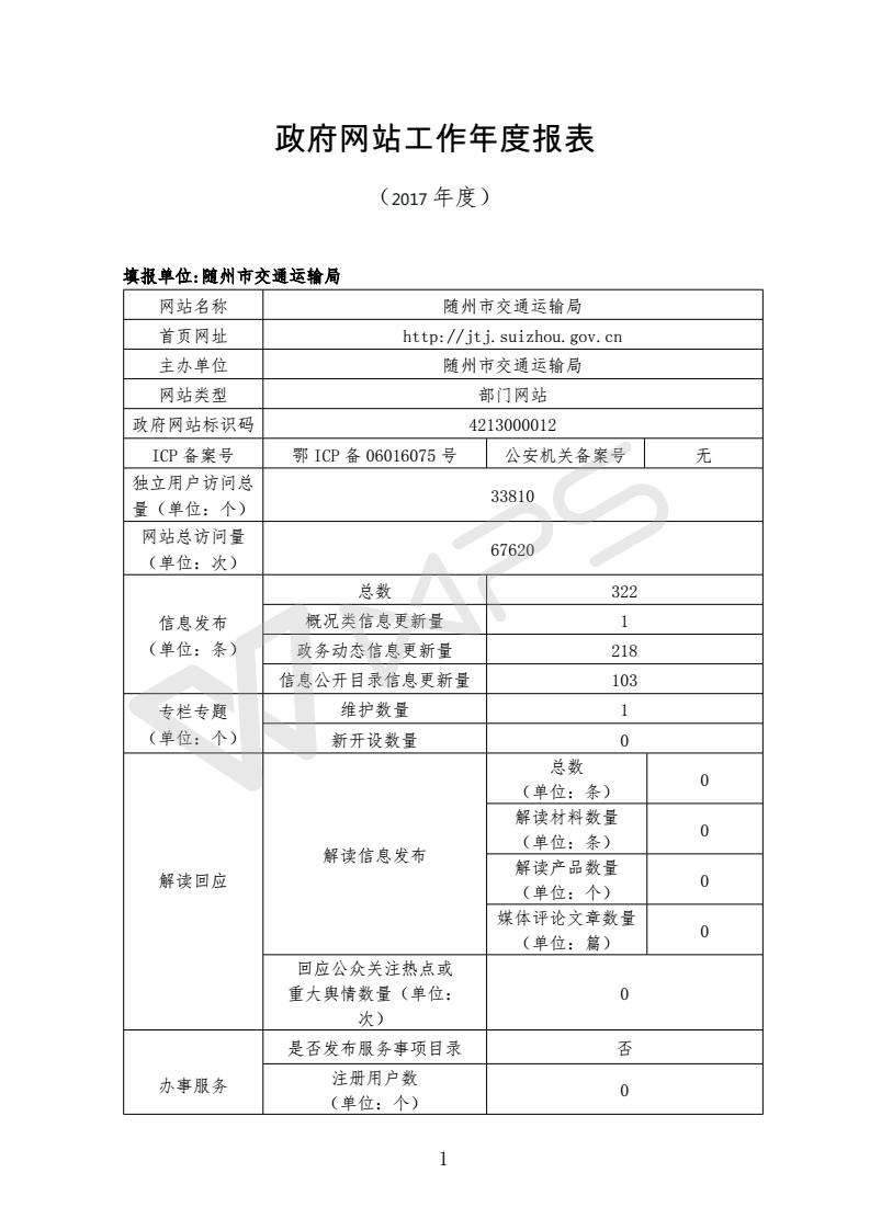 隨州市交通運(yùn)輸局網(wǎng)站工作年度報(bào)表(2017年度)