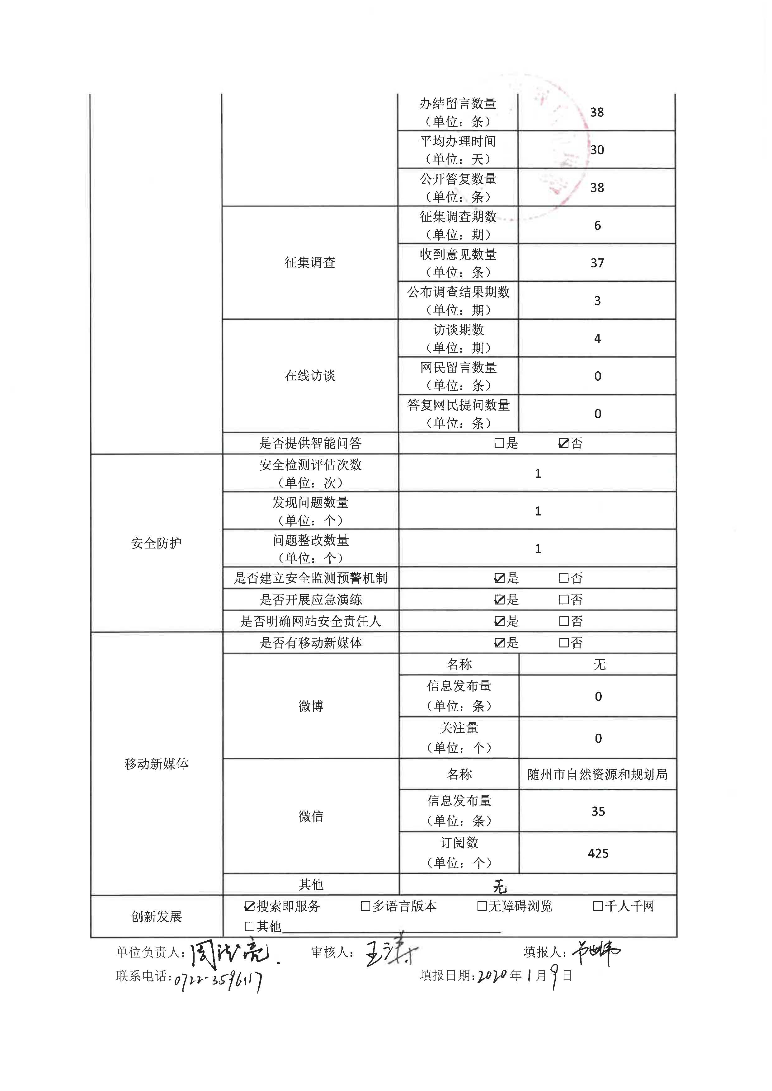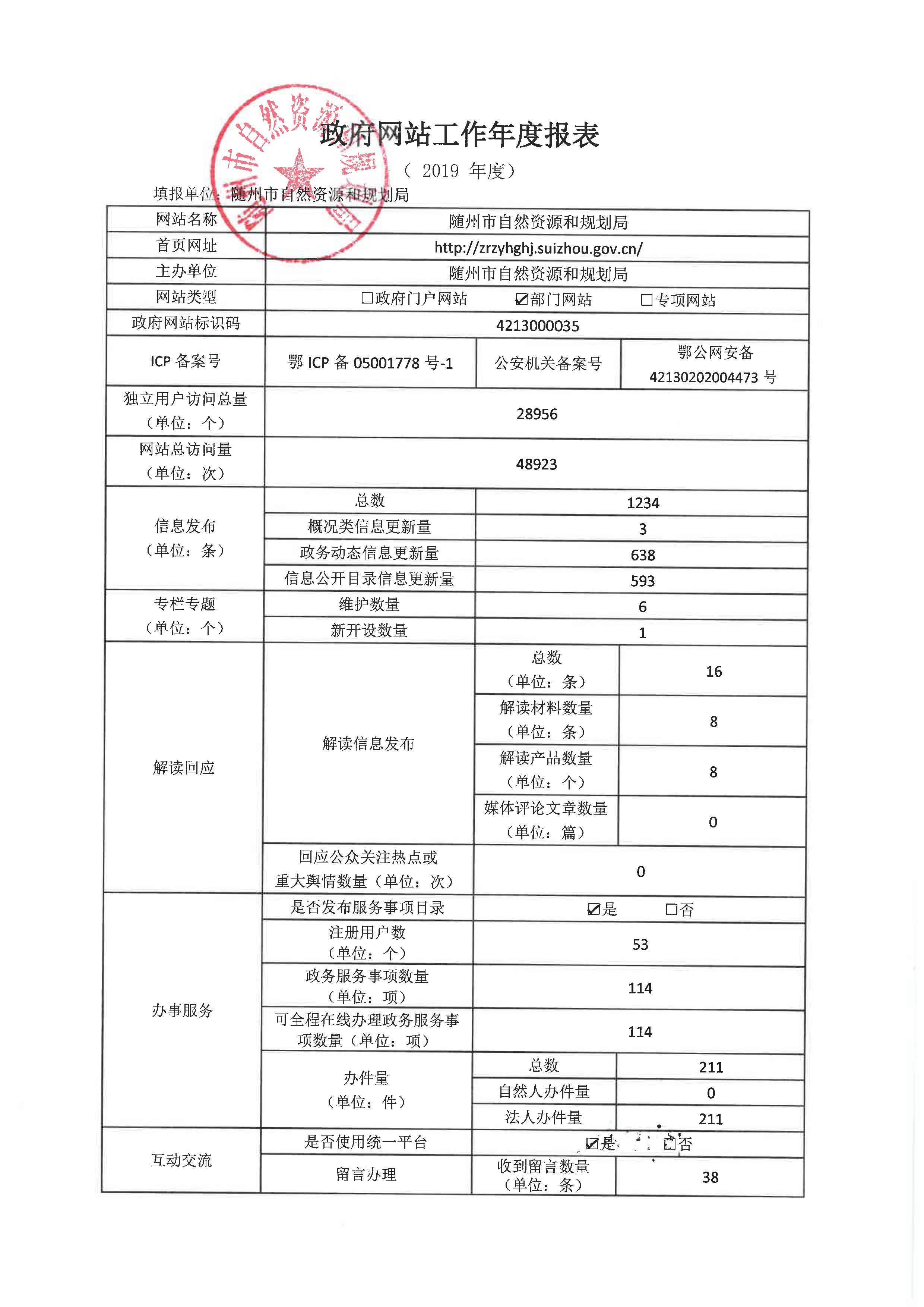 隨州市自然資源和規劃局2019年政府網站工作年度報表