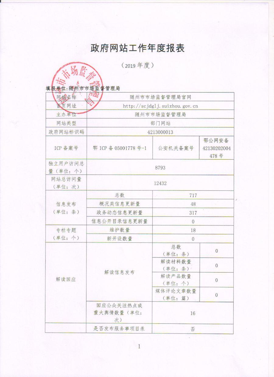 隨州市市場監督管理局2019年政府網站工作年度報表