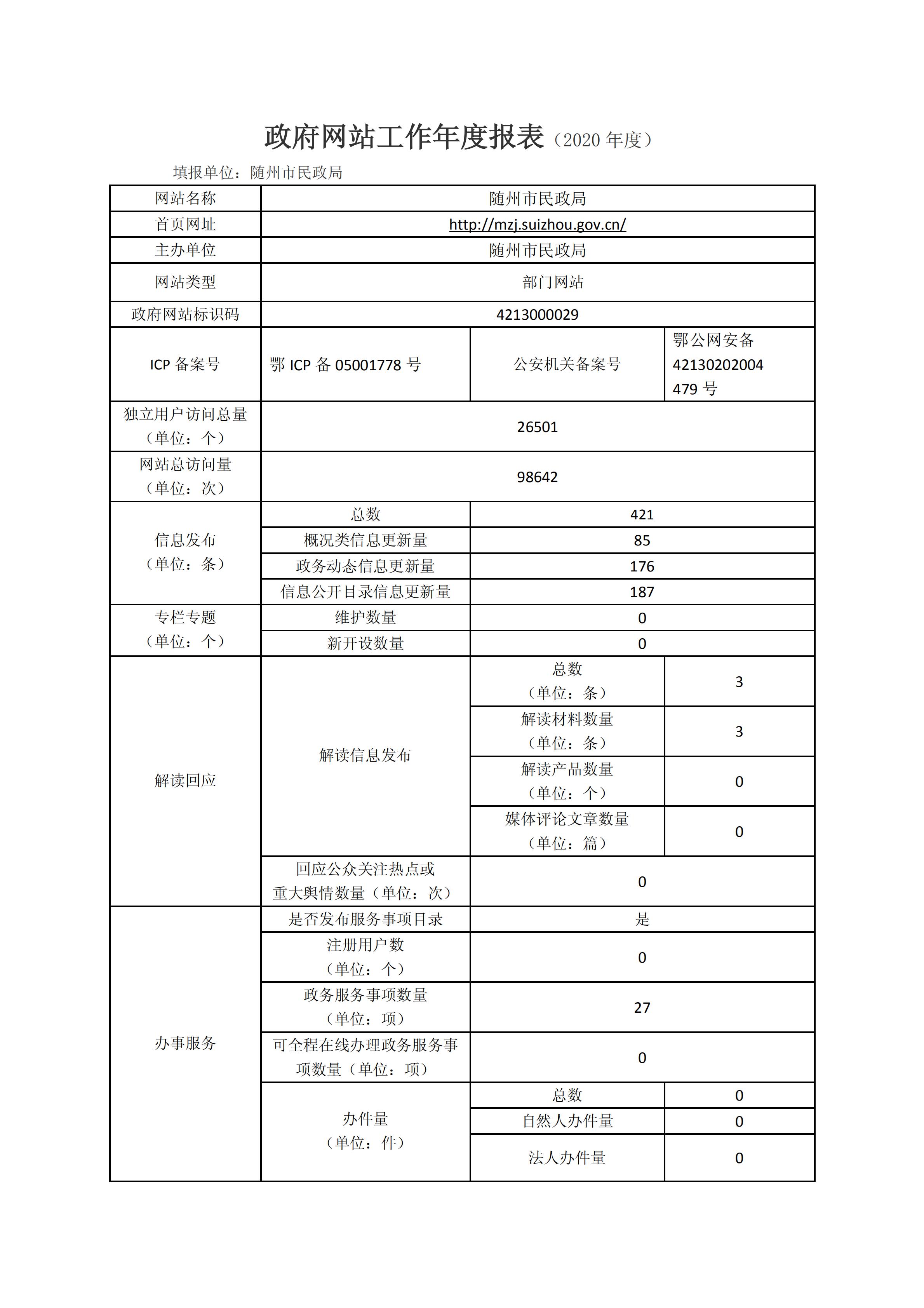 隨州市民政局2020年政府網(wǎng)站工作年度報表