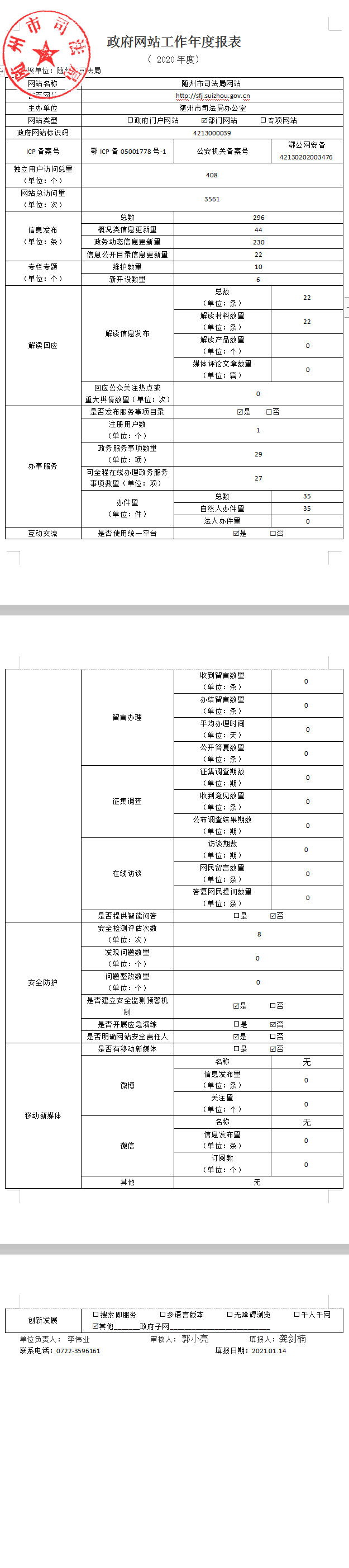 隨州市司法局2020年政府網(wǎng)站工作年度報表