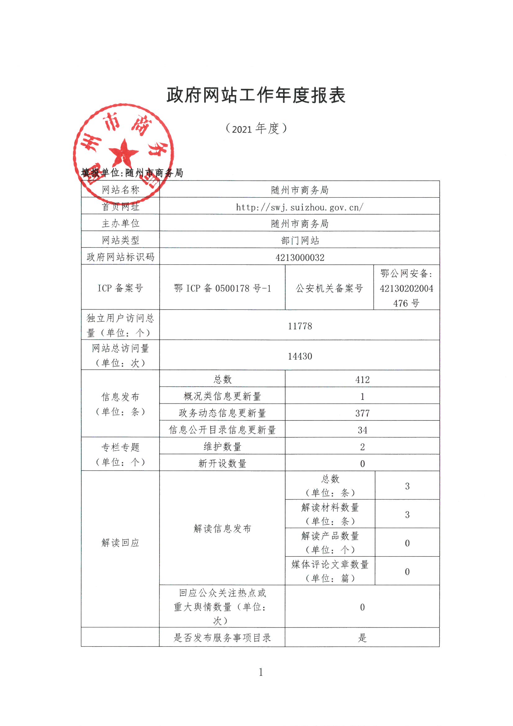 隨州市商務(wù)局2021年政府網(wǎng)站工作年度報(bào)表
