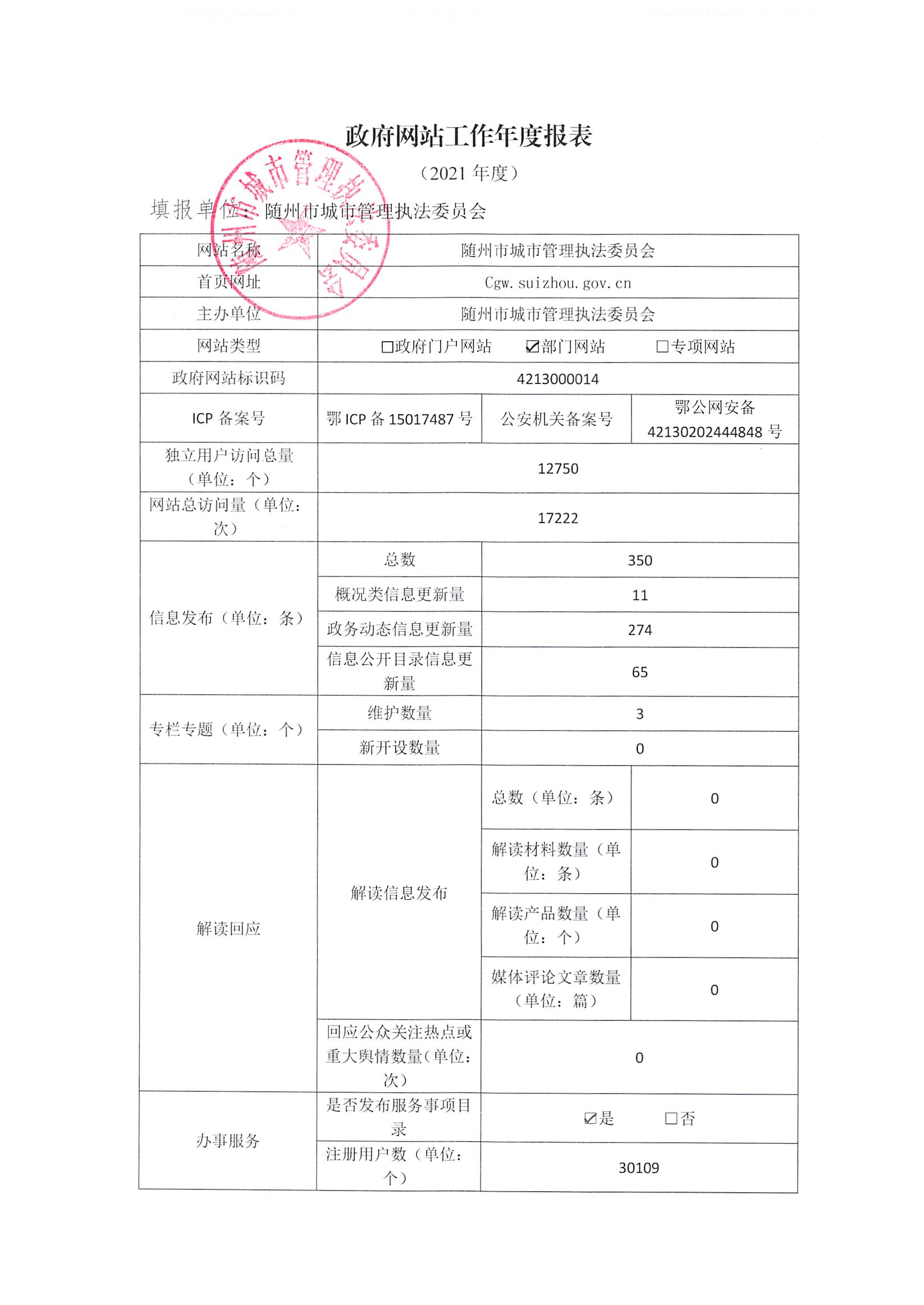 隨州市城市管理執法委員會政府網站工作年度報表(2021年度)