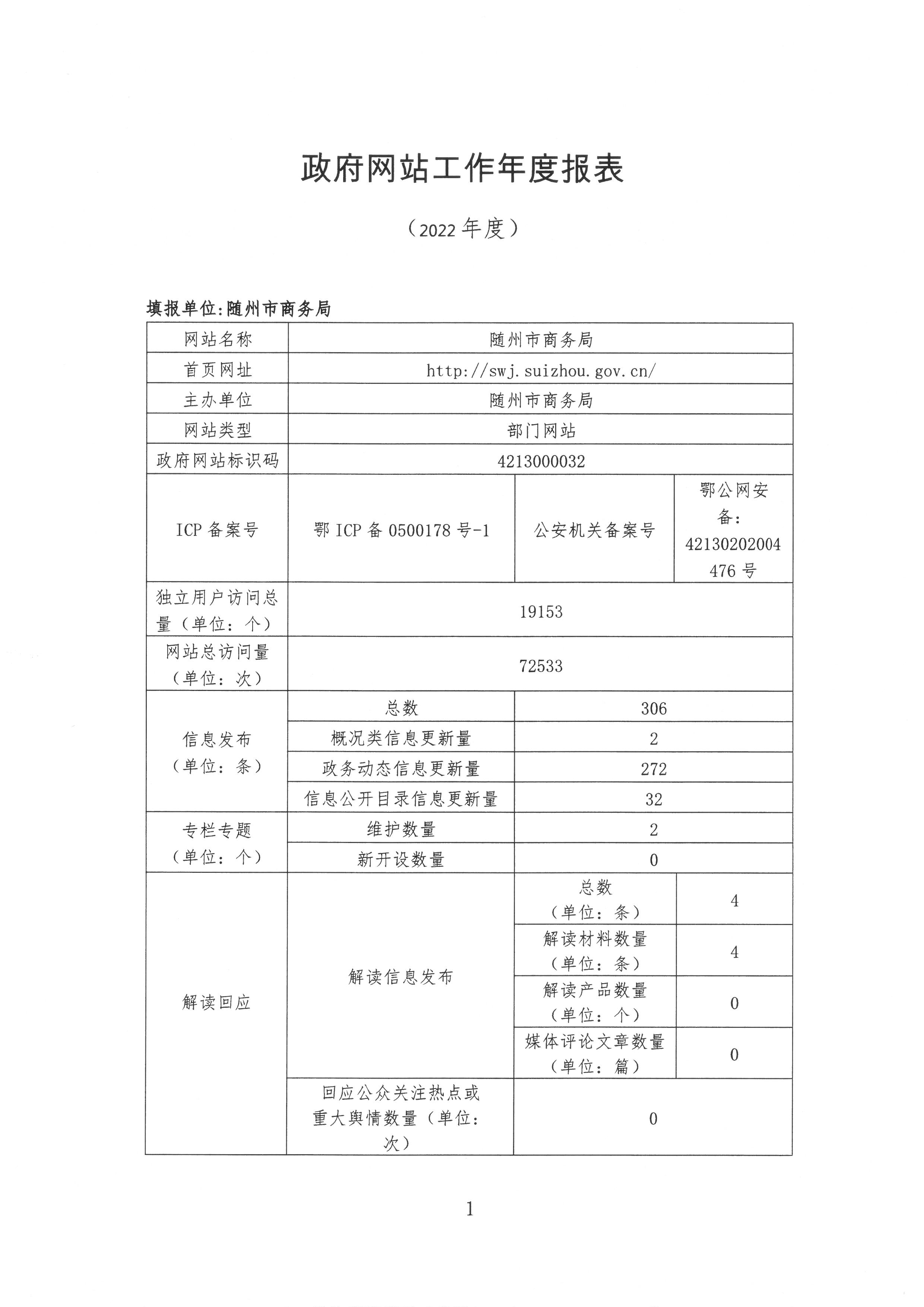 隨州市商務(wù)局2022年政府網(wǎng)站工作年度報(bào)表