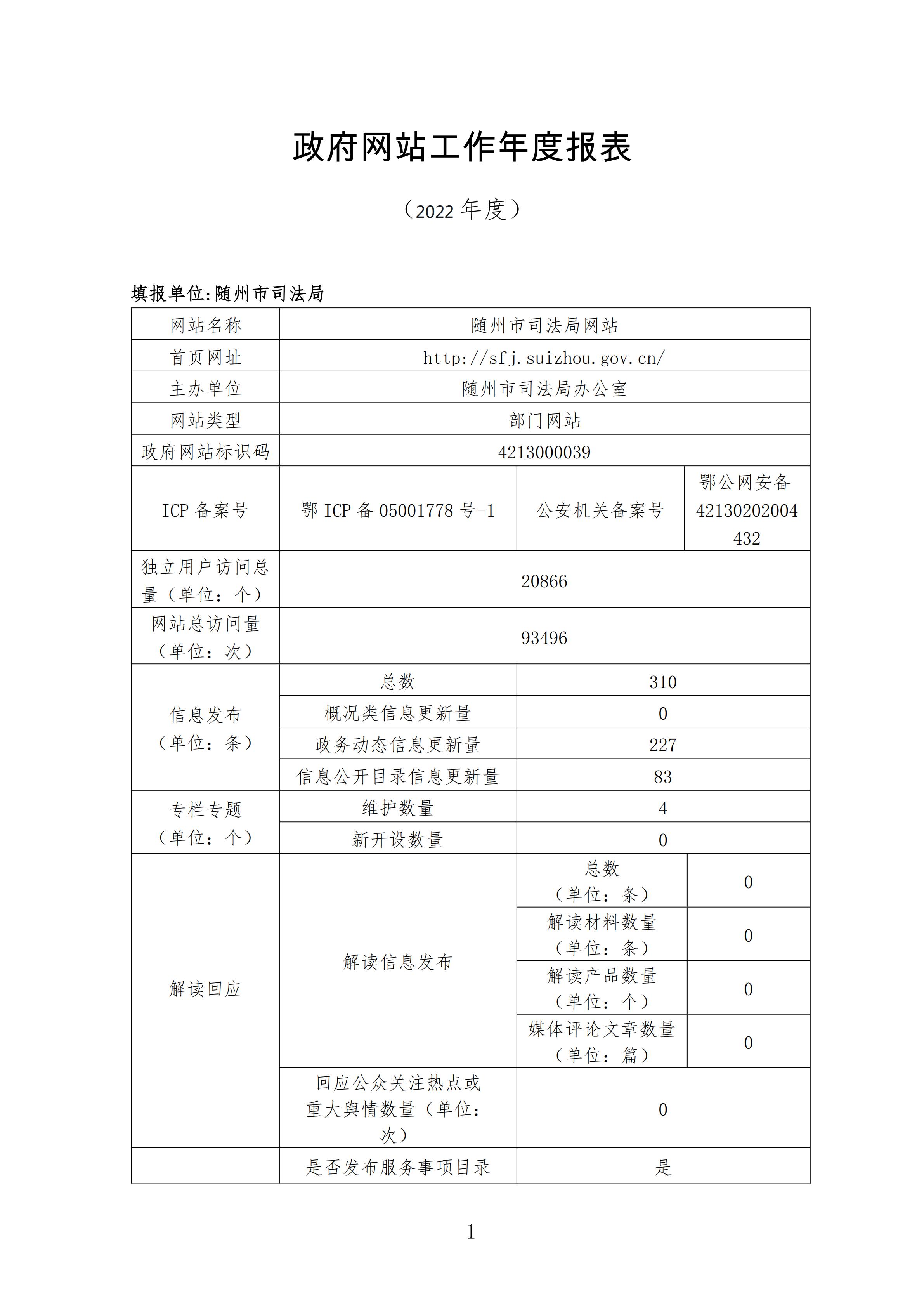 隨州市司法局2022年政府網(wǎng)站工作年度報(bào)表