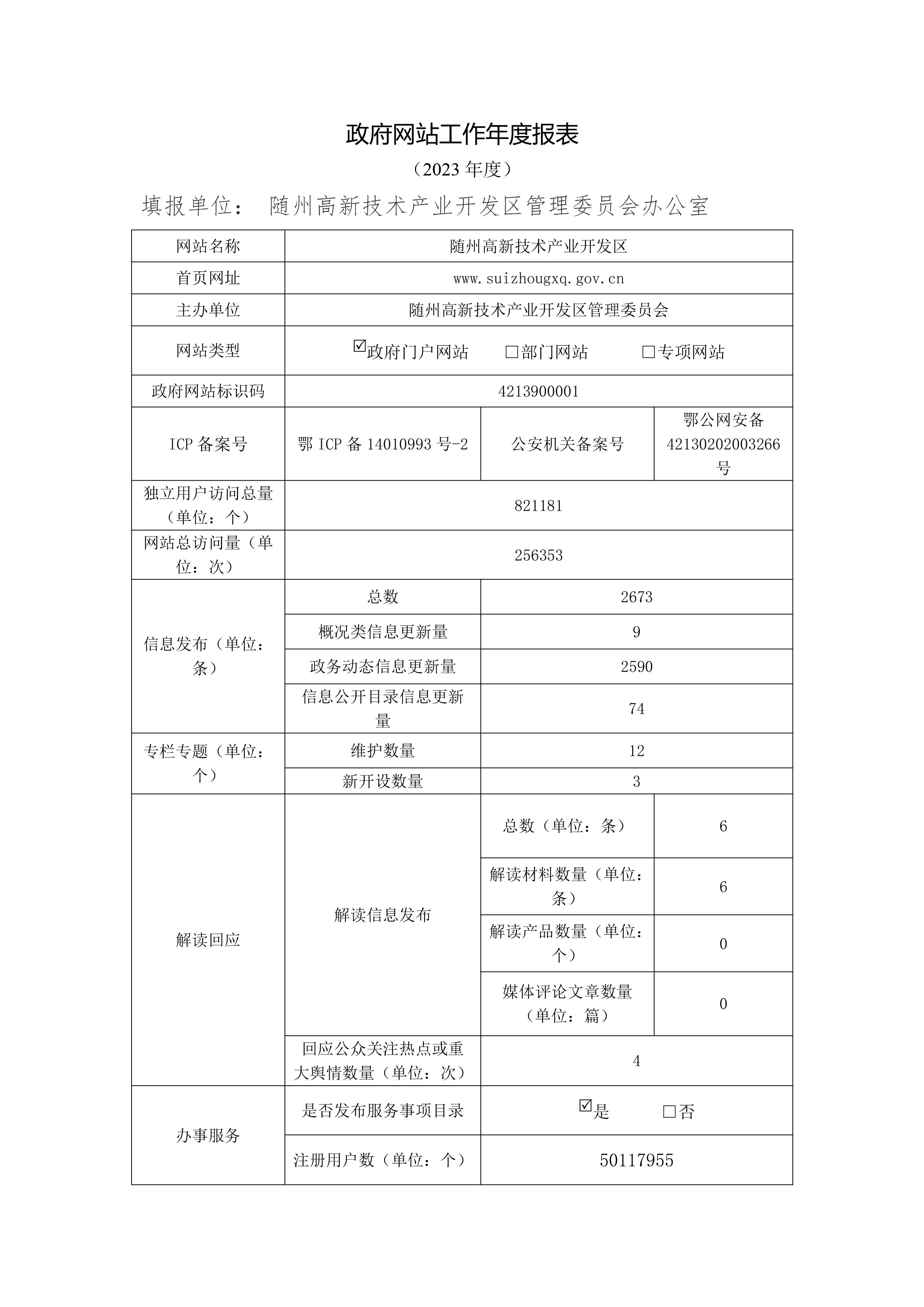 隨州高新技術產業開發區管理委員會2023年政府網站工作年度報表