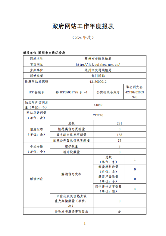 隨州市交通運輸局2024年政府網(wǎng)站工作年度報表