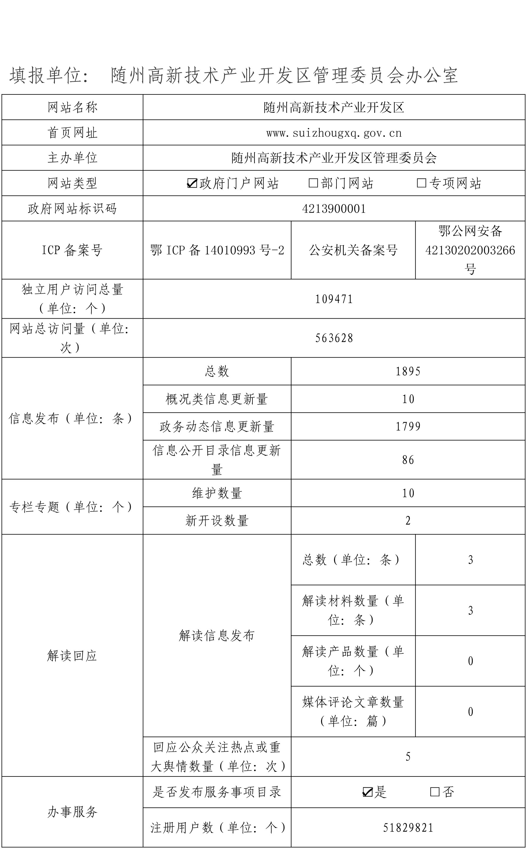 隨州高新技術(shù)產(chǎn)業(yè)開發(fā)區(qū)管理委員會2024年政府網(wǎng)站工作年度報表